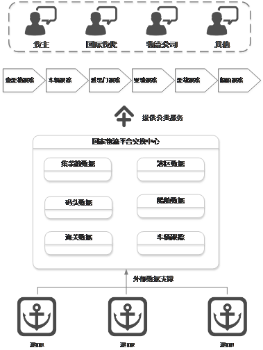互聯對接港口企業、航運企業、外貿物流企業以及港航EDI中心(交通電子口岸分中心),高效獲取口岸監管相關數據,有效送達相關信息服務;建立與海關、國檢、邊檢部門間的信息交換共享服務通道,并通過港航EDI中心(交通電子口岸分中心)實現與各地海關、檢驗檢疫和邊防等部門間的信息共享。與沿江沿海主要港口、重點航運企業和外貿物流企業以及港航EDI中心完成互聯,面向港航企業、航運船舶提供準確權威的進出港相關信息服務,并為其提供便捷的跨運輸方式單據交換通道。