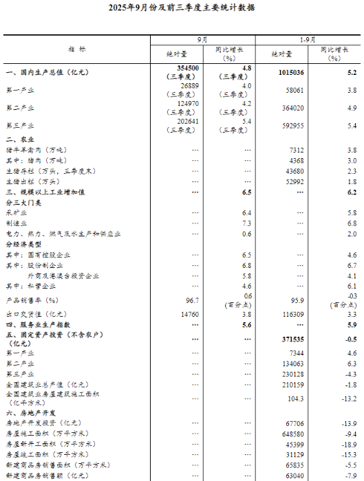 - 國家統(tǒng)計局:前三季度經(jīng)濟運行穩(wěn)中有進 高質(zhì)量發(fā)展取得積極成效